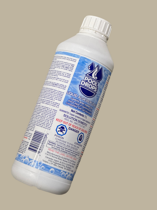 Piscines et Spas POSEIDONPool Drops Plus est un algicide liquide extra fort à long terme compatible avec les piscines d’eau salée, d’ozone, d’UV et de chlore. Pool Drops él...
