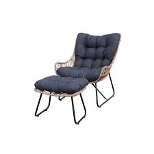 Piscines et Spas POSEIDONBoho style armchair / footrest set in 5mm flat rattan Powder-coated steel structure 10cm thick seat cushion made of 210g polyester (yarn dyed) Armc...
